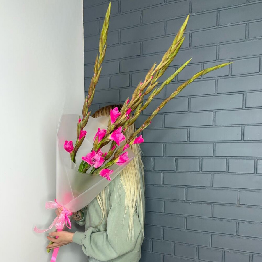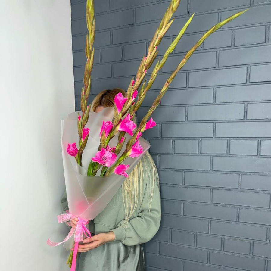 Букет из 9 розовых гладиолусов