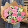 Букет из белой эустомы и розовых гвоздик в Снежинске